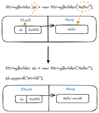 - String과 달리, 한 번 생성된 이후에도 내용을 변경할 수 있는 가변 객체이다.
